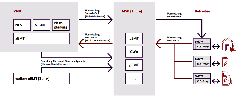 agentur mit Herausforderungen zur prozessualen Abwicklung von Steuerhandlungen sowie zur Integration von steuerbaren Verbrauchseinrichtungen und Netzanschlüssen nach § 14a Energiewirtschaftsgesetz (EnWG) konfrontiert. Die auf Basis des Messstellenbetriebsgesetzes (MSBG) und der nach § 14a EnWG formulierten Beschlüsse führen zu einem Marktmodell zum Messen und Steuern, nach dem die oben genannten Energiemarktteilnehmer zunehmend miteinander kommunizieren und steigende Mengengerüste an Datenflüssen verwalten und verarbeiten müssen.